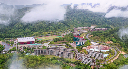 学校校园占地500亩,坐落于中山市生态保护区五桂山石鼓,依山傍水,风景如画,由法国著名建筑设计大师莫尼先生设计,建筑面积约12万平方米,绿化面积约10万平方米。现有在编教职员358人,其中专任教师294人,高级职称121人,“双师型”教师205人,有硕士学位109人,形成了一支以高、中级教师和“双师型”为主体的高素质的教师队伍。